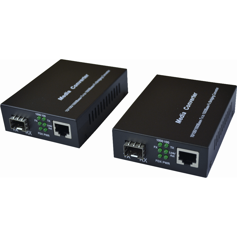 Ethernet Over Fibre 10/100/1000 Twin pack 1.25Gbps Full Duplex MDI/MDI-X adaptive Supplied with 5v PSU. Requires SFP