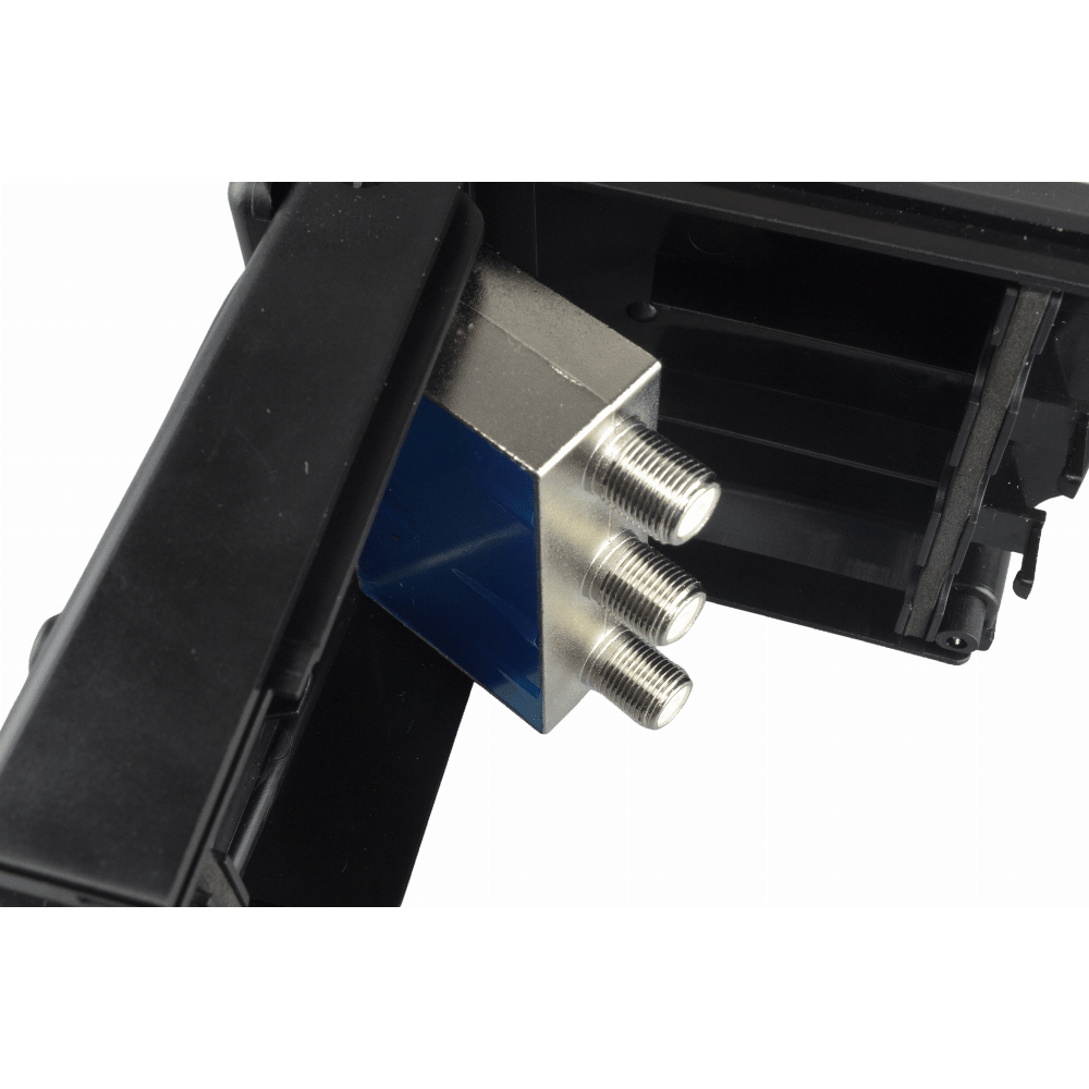 The amplifier's thoughtfully engineered design allows for convenient access. The case opens to a full 90 degrees, providing easy access to the F connectors, while the shielded amplifier casing swings out to 45 degrees. The casing includes an LED indicator to confirm power reception.