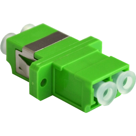 The Single Mode Fibre Optical OS2 Duplex Adaptor/Coupler LC/APC Female to Female in green with a flange is designed to provide a reliable and efficient connection for single-mode fibre optic cables. It serves as a termination or linking device, ensuring minimal loss during light transmission.