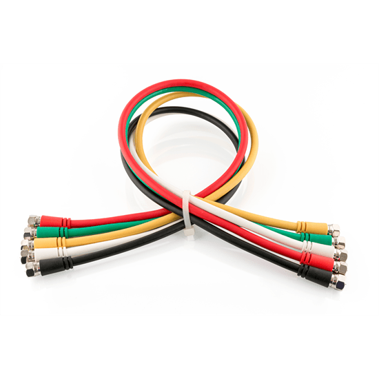 The five 60cm long leads are colour coded to simplify your installation and keep everything organised. Importantly, they keep all signals at a high quality through low loss cables and F-connectors (F-connectors are a type of coaxial RF connector used to connect with RG-6/U or RG-59/U to carry TV and radio signals)
